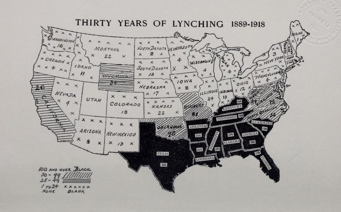 - In April 1919, Thirty Years of Lynching in the United States,1889-1918 was published by the NAACP detailing the locations of 2,522 blacks killed by lynching mobs, a total of 78.2 percent of the total number of mob lynchings throughout the U.S. and most of these in the South,3 what Mark Twain called “The United States of Lyncherdom”.1,4